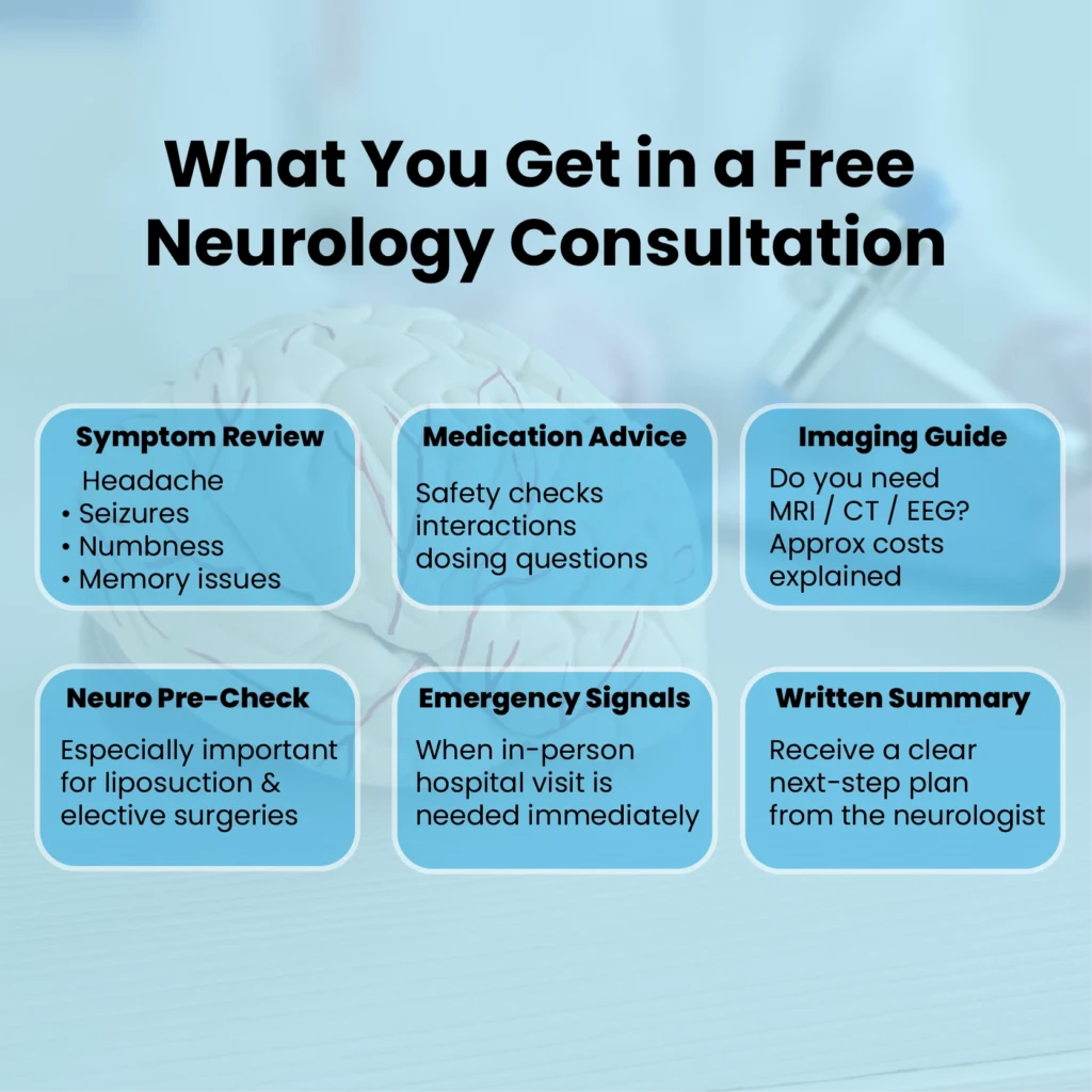 This is the practical meaning of online neurology doctor free advice when it is done properly, it is not simply a short chat, it is a clinically structured first decision point.